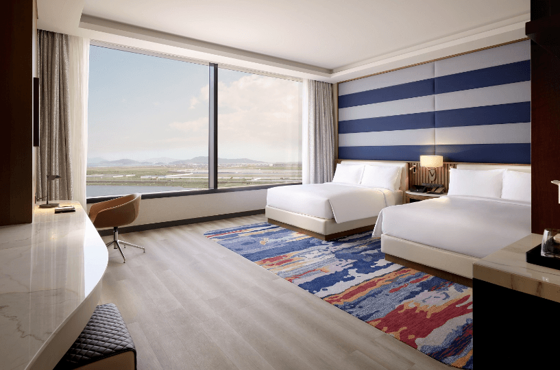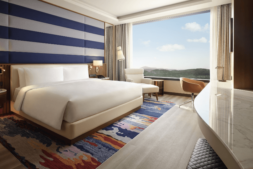 럭셔리 숙박 시설: 인천 인스파이어리조트는 최고급 호텔 객실과 스위트를 제공하여 방문객들이 편안하고 안락한 휴식을 취할 수 있도록 합니다. 모든 객실은 현대적이고 세련된 디자인으로 꾸며져 있으며, 멋진 인천의 전망을 감상할 수 있는 창문이 있습니다.