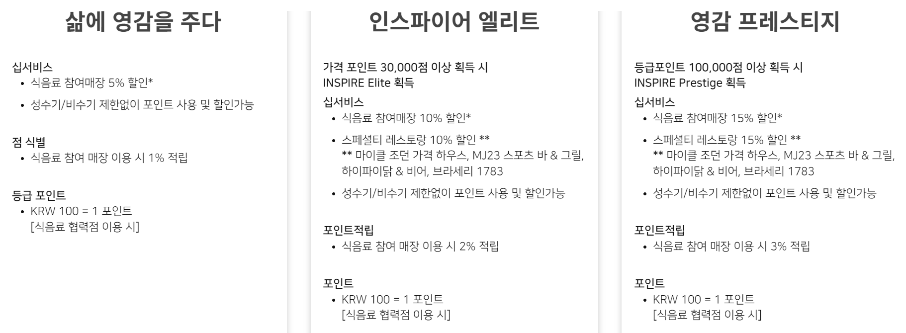 제휴 카드 할인: 특정 신용카드와 제휴하여 멤버십 회원들에게 추가 할인을 제공합니다. 제휴 카드로 결제 시 숙박, 식사, 스파 이용 등에 대해 추가 할인을 받을 수 있습니다.