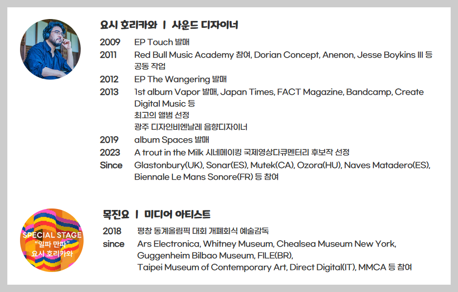 자연의 소리를 이용해 섬세하고 깊이 있는 음악을 만들어내는 요시 호리카와의 공연은 관객들에게 새로운 음악적 경험을 선사할 것입니다.